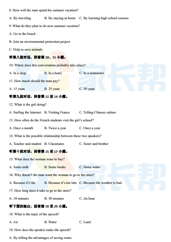 您现在的位置:中考长沙站 > 中考备考 > 中考模考 > 英语模考 > 正文