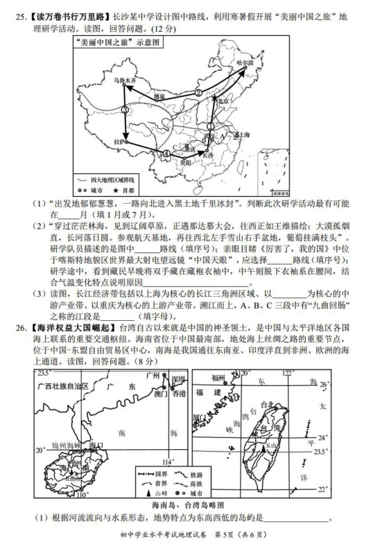 2018年长沙初中学业水平考试地理试题(图片版)(5)