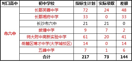 2018年长沙市六中指标生计划及实际录取情况 2018年长沙市六中划线计划=计划450-直升生13-指标生73-特长生27=337人。