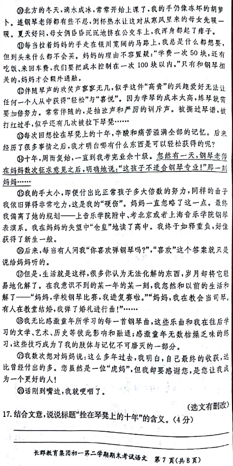 2018年长郡集团七年级下期末考试语文试卷(7)