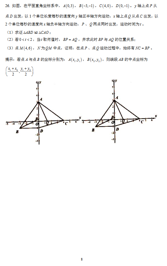 2018年雅礼集团七年级下期末考试数学试卷(8)