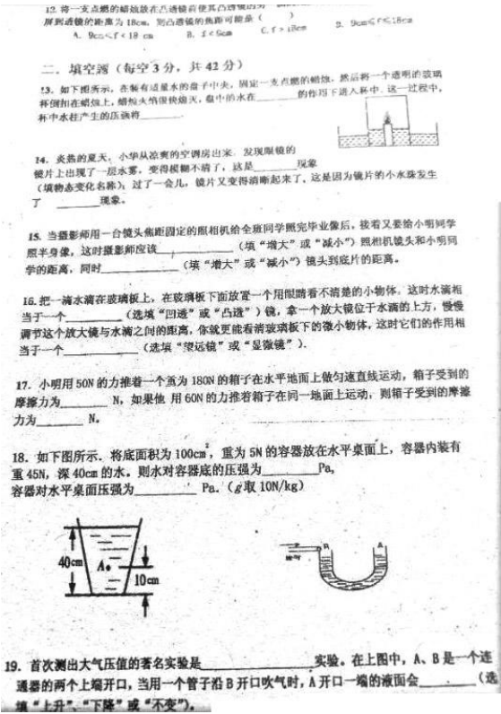2018年长郡集团澄池杯初赛物理试卷(3)