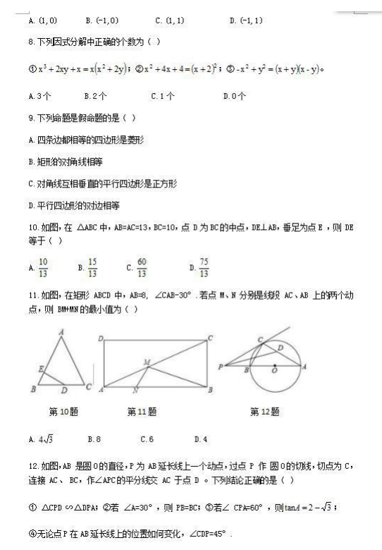2017-2018学年明德中学九年级下期中数学试题(2)