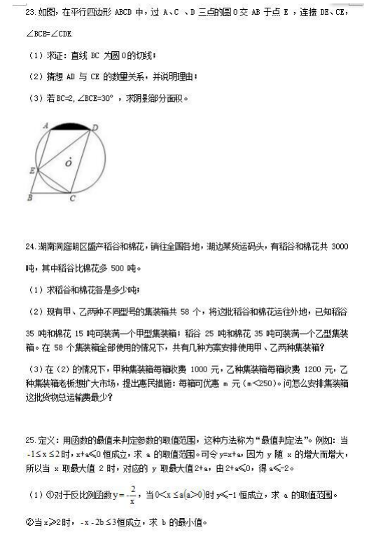 2017-2018学年明德中学九年级下期中数学试题(5)
